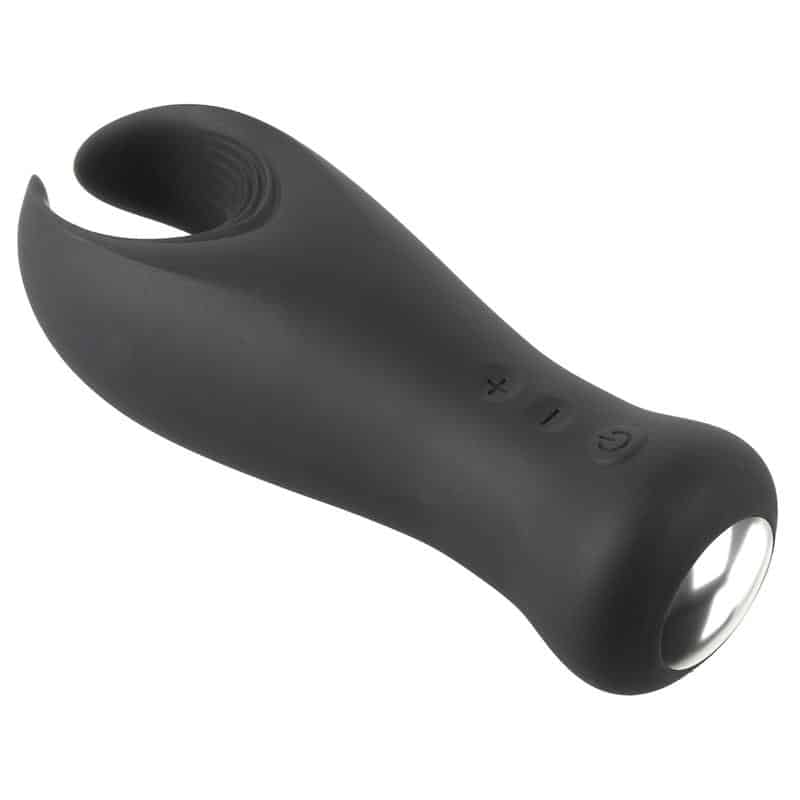 Intens håndjobb-stimulering med vibrerende vinger og rillede detaljer.